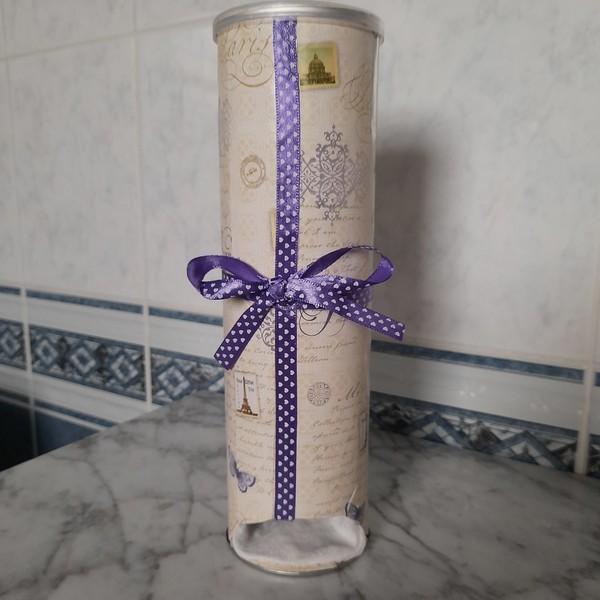 Creation de ce distributeur avec une boîte de springles recouverte d un joli papier et le tour est joue